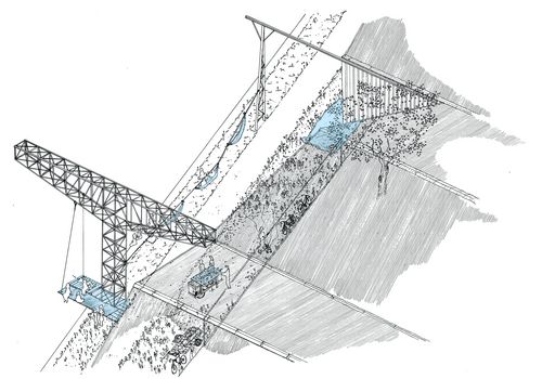 Rechercher des matériaux et des lieux de construction. Le projet émerge de ses deux paramètres. Utiliser un bureau mobile pour effectuer la conception in situ.