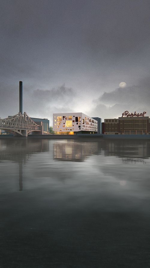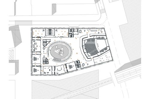 La salle de concert est elle érigée comme un objet détaché du reste du bâtiment profitant de vues sur la Seine pour en faire une toile de fond à l'espace de représentation qu'il génère.