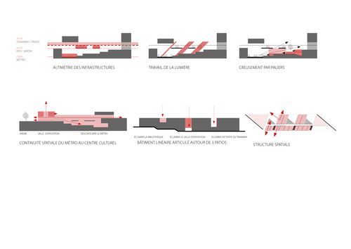 Profitant de l’opportunité d’une nouvelle gare à la croisée des communes de Drancy, La Courneuve et Le Bourget, ce projet de fin d’études propose une réflexion sur le rapport qu’entretient l’architecture avec les infrastructures, non plus simplement comme une mise à distance l’une de l’autre laissant des territoires enclavés à l’abandon, mais en questionnant l’avenir de ces territoires et leur potentiel à devenir de nouvelles polarités pour le grand Paris. Les gares de demain sont des programmes complexes, de nouveaux équipements métropolitains dont la conception doit prendre en compte l’ensemble des échelles. De nombreux aller-retour entre projet urbain et projet architectural ont permis d’assurer la cohérence des parcours piétons pour recoudre des tissus urbains fragmentés autour d’un nouveau pôle intercommunal.