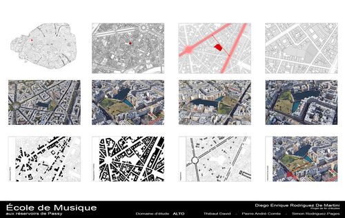 L’objectif principal était de créer un espace pour réactiver la zone, étant donné que le 16ème arrondissement est un quartier assez calme, nous sommes arrivés à la conclusion que la meilleure option serait un équipement public, culturel et éducatif : une école de musique. L'idée est de traiter le volume de la réserve d'eau comme une pièce solide qui va être perforée, créant des patios qui éclaireront naturellement l'intérieur du bâtiment.