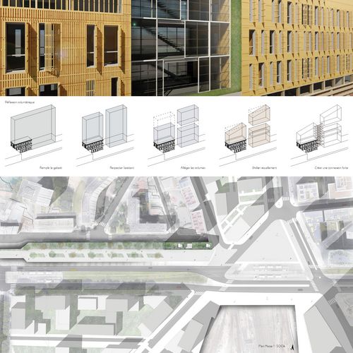 Celui-ci s'implante sur le site de l'ancienne Gare Masséna, dans le 13ème arr. de Paris, au cœur de la ZAC Paris Rive Gauche. Le patrimoine bâti constitué par la gare est revalorisé, une surélévation en bois structurel y est implantée. Une extension de 50 mètres de hauteur en bois structurel également fait continuité à l'ancien bâtiment.