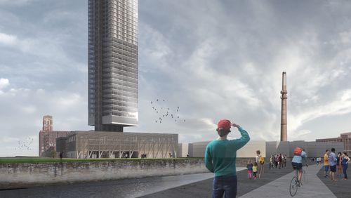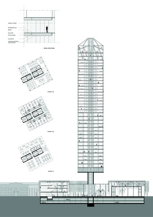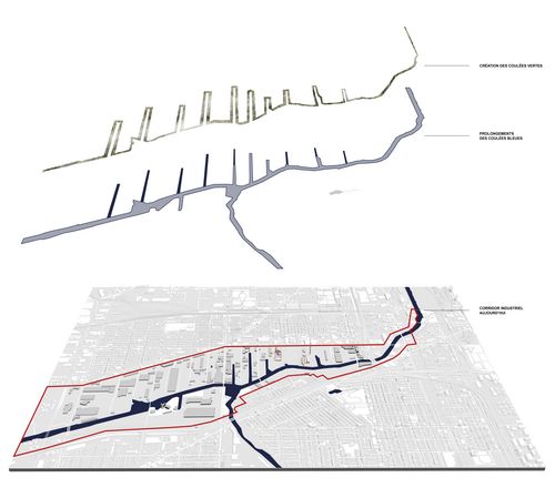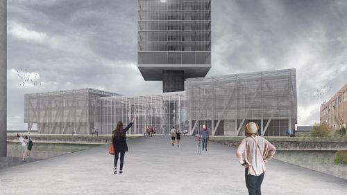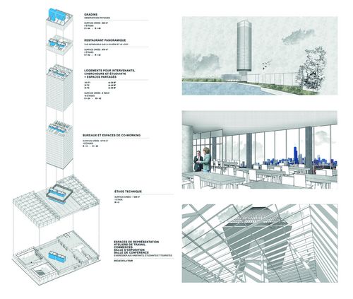 La ville a oublié une grande partie de son territoire, son «arrière scène» et notamment le corridor industriel, où le projet se situe. Le site doit se réinventer et ses espaces doivent être requalifiés. Il s’agit donc de proposer un changement progressif des usages du corridor industriel. La phase urbaine du projet consiste à construire un campus universitaire pour l’innovation et les énergies vertes sur le site autrefois polluant qui accueille une ancienne usine à charbon, la Fisk Power Plant. Cette proposition a pour but de créer un cadre de vie animé, une véritable interface entre ville et rivière. Le nouveau pôle attractif est tourné vers les bords de la rivière qui retrouvent son potentiel oublié. Le programme du bâtiment est un pôle événementiel qui accueille : bureaux, logements, commerces, restaurants, espace de représentation et salle de conférence et de spectacle. La cheminée de l’usine de près de 160m de haut représente ainsi le symbole d’une ville industrialisée et la tour, le symbole d’une nouvelle centralité pour de nouvelles transformations. Le projet s’adresse désormais aux habitants, touristes et nouveaux usagers du campus universitaire.