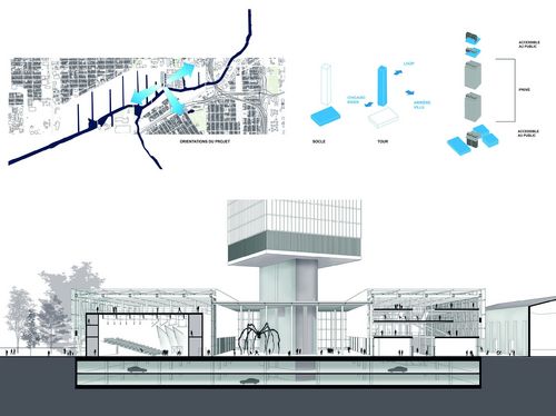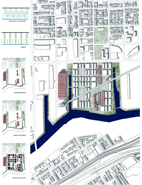 Chicago est une métropole des États-Unis aujourd’hui en pleine mutation. La ville offre une multitude de problématiques liées à son territoire qui témoigne de grandes inégalités : sociales culturelles, financières et urbaines. C’est dans ce contexte que j’ai choisi d’inscrire mon projet de fin d’études. L’objet de ce projet est de travailler à plusieurs échelles : à l’échelle territoriale, urbaine et architecturale. Quelle stratégie de transformation pour ce territoire ? Comment développer une nouvelle centralité pour la ville de Chicago ?