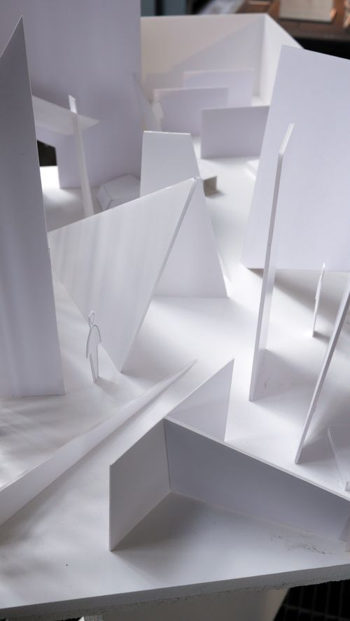 Envisageant les rapports entre constructions architecturales et constructions mentales, les étudiants, par groupe de travail, ont inventer des scénographies idéales qui puissent rendre sensibles les enjeux de l’exposition et la manière de la présenter.