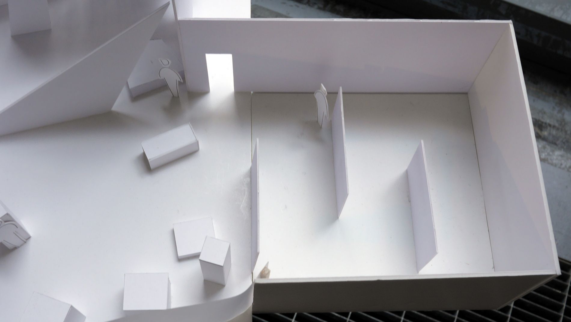 Le temps d’un semestre, dans le cadre d’un enseignement de licence, autour de la question des processus de création et d’une réflexion sur les questions d’architecture que pose la scénographie d’exposition, un groupe d’étudiants et leur enseignant André Avril, se sont penchés sur le propos de l’exposition Architectures Intérieures, exposition qui allait être présentée quelque mois plus tard au sein de leur école.