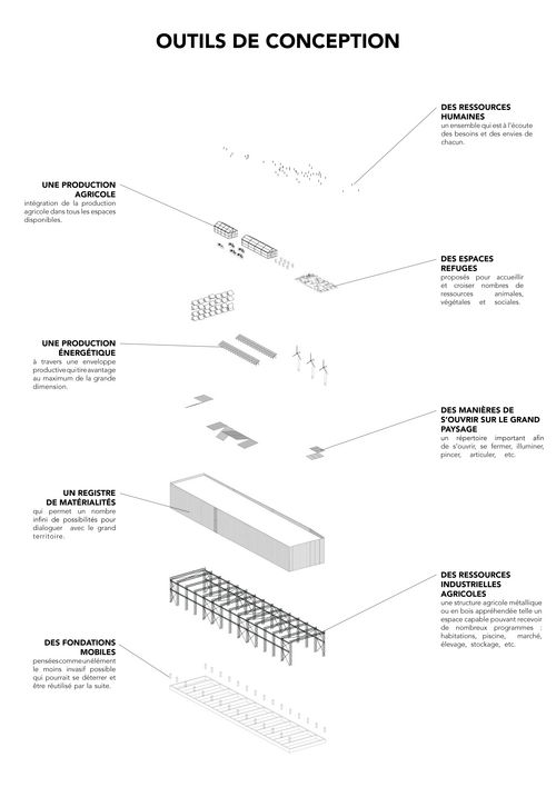 Les communes rurales représentent aujourd'hui 70% du territoire français(JANIN, Rémi, La ville agricole, 2017) et sont peu investies dans les projets d'école. Il nous tenait donc à cœur d'arpenter les campagnes et de les investir tout en se questionnant à comment tenter d'inverser la tendance démographique qui est en baisse. Nous avons souhaité travailler autour d'une réorganisation des campagnes, dessinant une transition écologique et environnementale, un projet collectif et respectueux de l'environnement et de tous. Nous nous sommes intéressé à la région naturelle de la Beauce, son paysage particulier de terres agricoles très fertiles et exploitées de manière intensive. À Brou, " ville-soufflé ", ville rythmée par l'activité des différents profils étudiés, nous avons mis en place le système " ville & campagne " tout en pratiquant une démarche élaborée au cours de cette année et qui est la suivante :