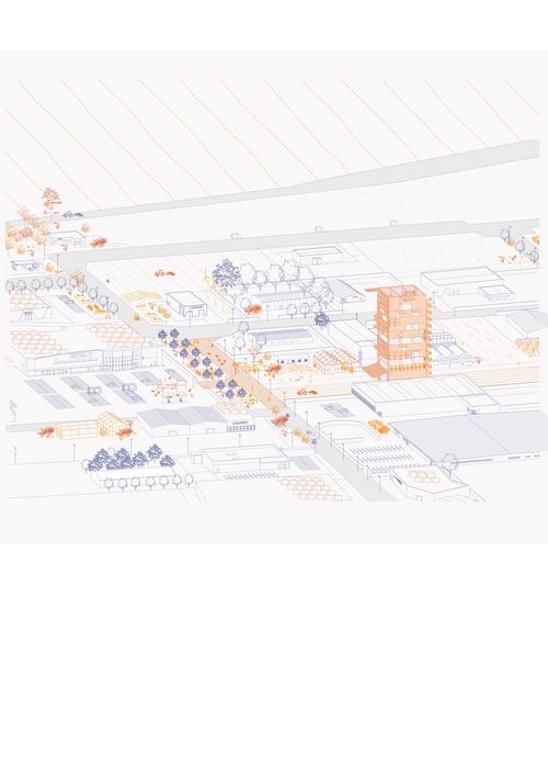 Axonométrie du projet dans le quartier Industriel