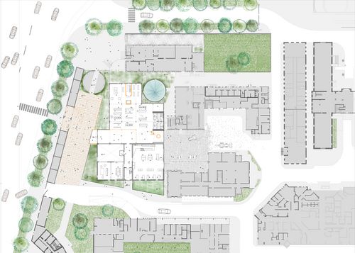 Cet angle a permis d’établir un phasage potentiel d’actions menées sur le site aboutissant à un futur projet urbain, pouvant prendre place dès demain. L’unique bâtiment aujourd’hui inoccupé de l’ensemble hospitalier, la chaufferie, est investi et devient le lieu de conception du futur projet urbain.