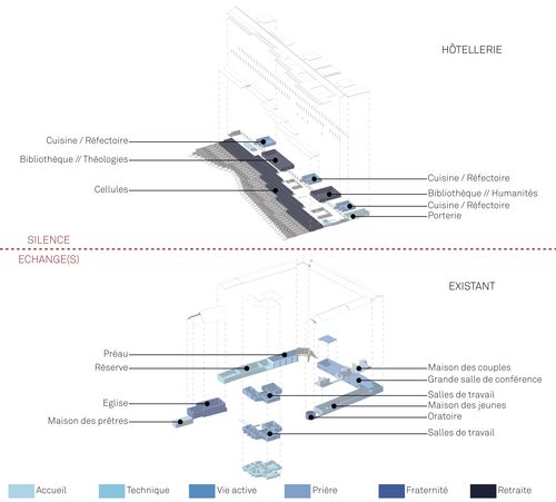 Le projet propose d’installer un monastère pour une nouvelle vie. Mais c’est un monastère nouvelle génération. D’un point de vue architectural, le cloître s’allonge. D’un point de vue logistique, ce sont des laïcs qui s’occupent du lieu. A la manière des Chartreux, les résidents sont invités à se retirer du monde et de leur quotidien pour retrouver l’Essentiel.