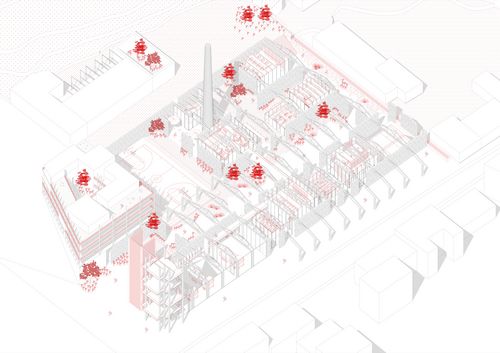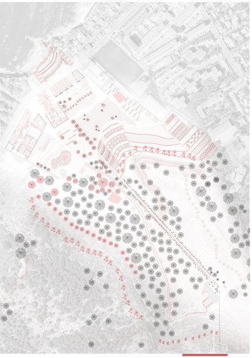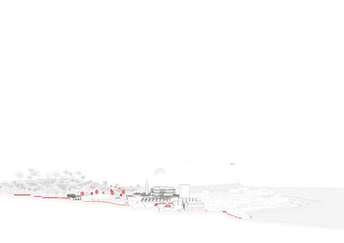 Le 5e élément épouse la temporalité du paysage puis celle de l'architecture. Il s'agit de prendre ce territoire dans son état actuel, dans son abandon et son délaissement. Il est devenu friche, tiers-paysage et ruine. En prenant en compte ce nouveau paysage comme notre point de référence nous voulons être en rupture avec un passé industriel dont nous ne sommes pas témoin. Nous voulons être en rupture avec le modèle de reconversion de friches industrielles.