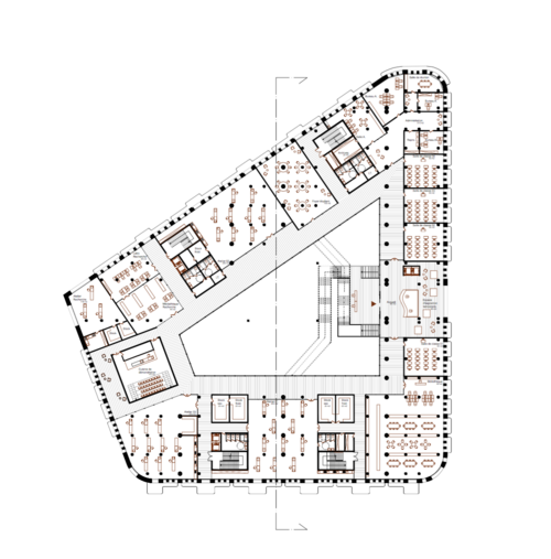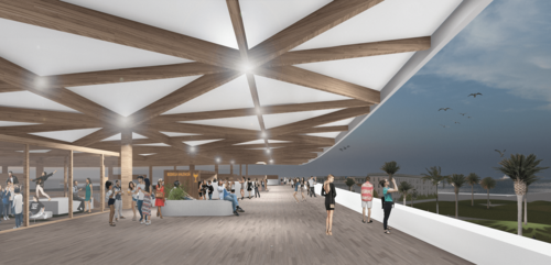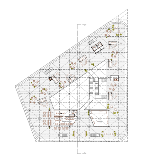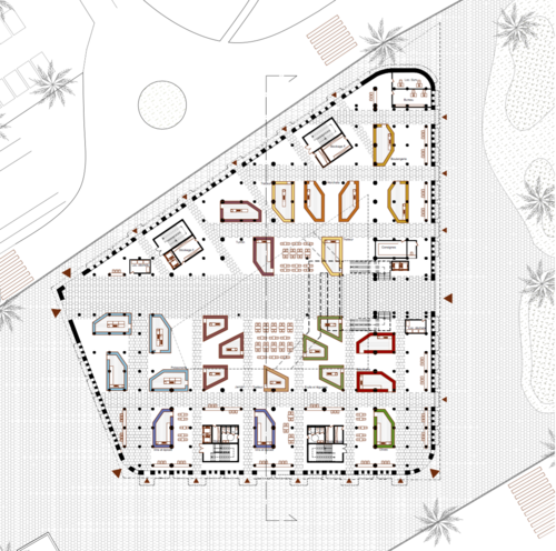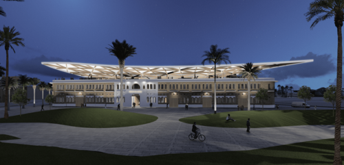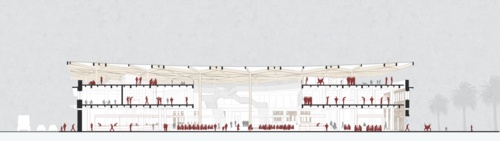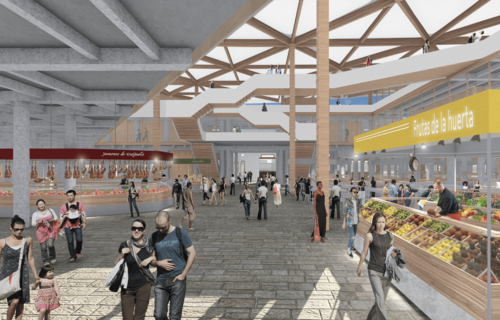 Le programme de cette réhabilitation se compose d’un marché, une école de cuisine et un toit-terrasse profitant d’une vue panoramique et divers espaces de détente et de dégustation. Ainsi, une véritable fabrique culinaire, autour de la culture gastronomique valencienne s’installe dans le bâtiment et lui redonne vie. Pour venir sublimer et dialoguer avec le patrimoine existant, une toiture contemporaine, ayant une structure maillée en bois et une membrane PTFE, viens couronner le bâtiment et apporte un signal visuel depuis la rue.
