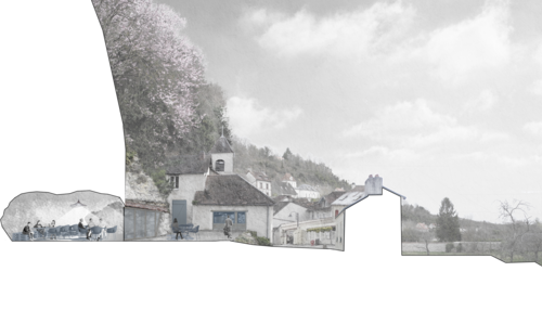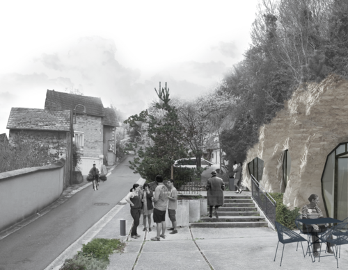 Le second s’organise autour d’une place construite par la mairie en 2008 au coeur du village. Nous choisissons de mettre en valeur les éléments qui la compose, c’est-à-dire un atelier de poterie et trois grottes troglodytes. Nous transformons alors ces grottes en une épicerie et un restaurant et offrons un meilleure visibilité sur l’artisanat.