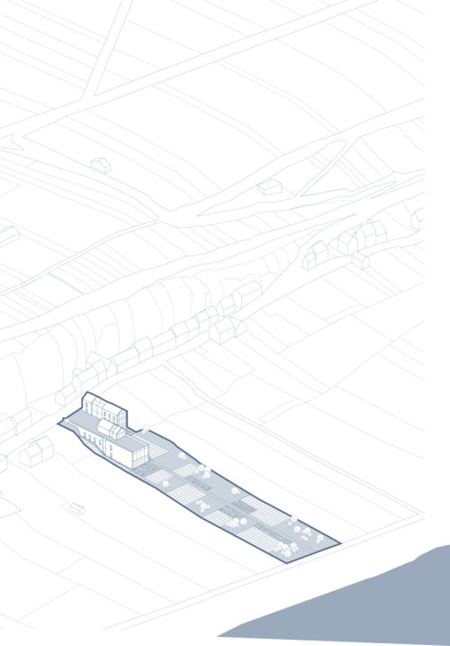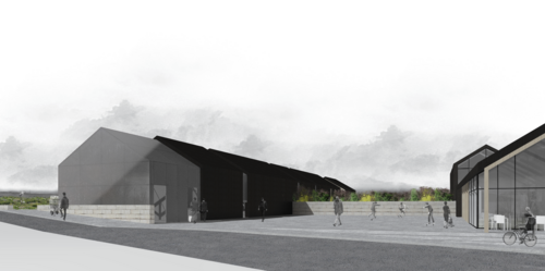Le dernier site relie la rue principale à la Seine. Nous avons alors choisi d’apporter un programme polyvalent, vecteur de culture(s), où prennent place des formations à la permaculture tout en diffusant la culture au sens large en accueillant des expositions, diverses activités et des spectacles. Aussi, un gîte héberge les apprentis et les promeneurs. Il permet alors d’accroître l’attractivité touristique de ce village.
