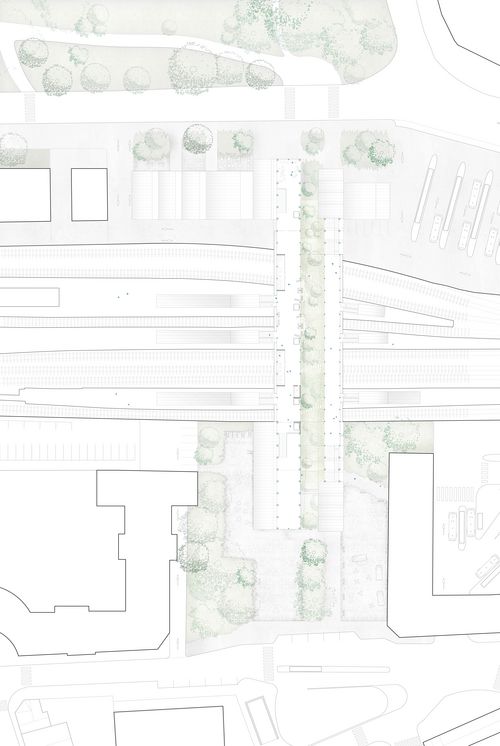 La thématique du franchissement est au coeur du projet de la nouvelle gare. Il est d'une part destiné aux piétons et la gare est considérée comme un lieu de passage public. D'autre part, il est destiné à la biodiversité. En plus de redonner un accès physique aux berges, il permet la perception de cette biodiversité depuis Poissy en la faisant traverser les rails. De cette façon, la biodiversité est au coeur du projet et elle organise la gare.