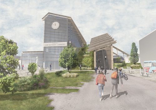 La gare de Poissy paraît être l'articulation de ces intentions, de part sa position centrale entre Poissy et Carrières et sa proximité avec les berges. Il doit devenir une polarité forte du territoire et contribuer à la naissance d'une entité unique.
