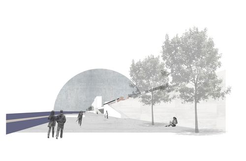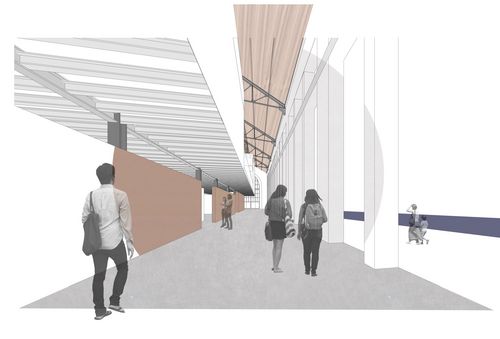 Le projet architectural, lui, cherche à faire mémoire du passé industriel, lié à l'eau et à la Seine, de l'usine. Le projet transforme donc cette usine en musée de l'eau. Le visiteur se déplace à travers des espaces d'expositions desservis par un axe principal. Des espaces toute hauteur permettent d'apprécier le volume de la halle et son architecture industrielle. Les différents espaces d'exposition offrent des vues sur la Seine, créant un lien privilégié avec le fleuve et rappelant la fonction première de l'usine. Ce projet cherche finalement à créer un pont entre le passé du bâtiment et la fonction contemporaine de celui-ci.
