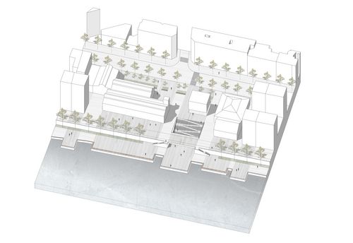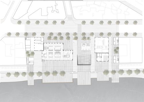 Le projet urbain cherche, d'une part, à inscrire le bâtiment dans le grand paysage des berges parisiennes en créant un lien direct avec les berges du fleuve aménagées et rendues piétonnes, et d'autre part, à ouvrir la parcelle pour la restructurer et en faire un lieu public attractif.