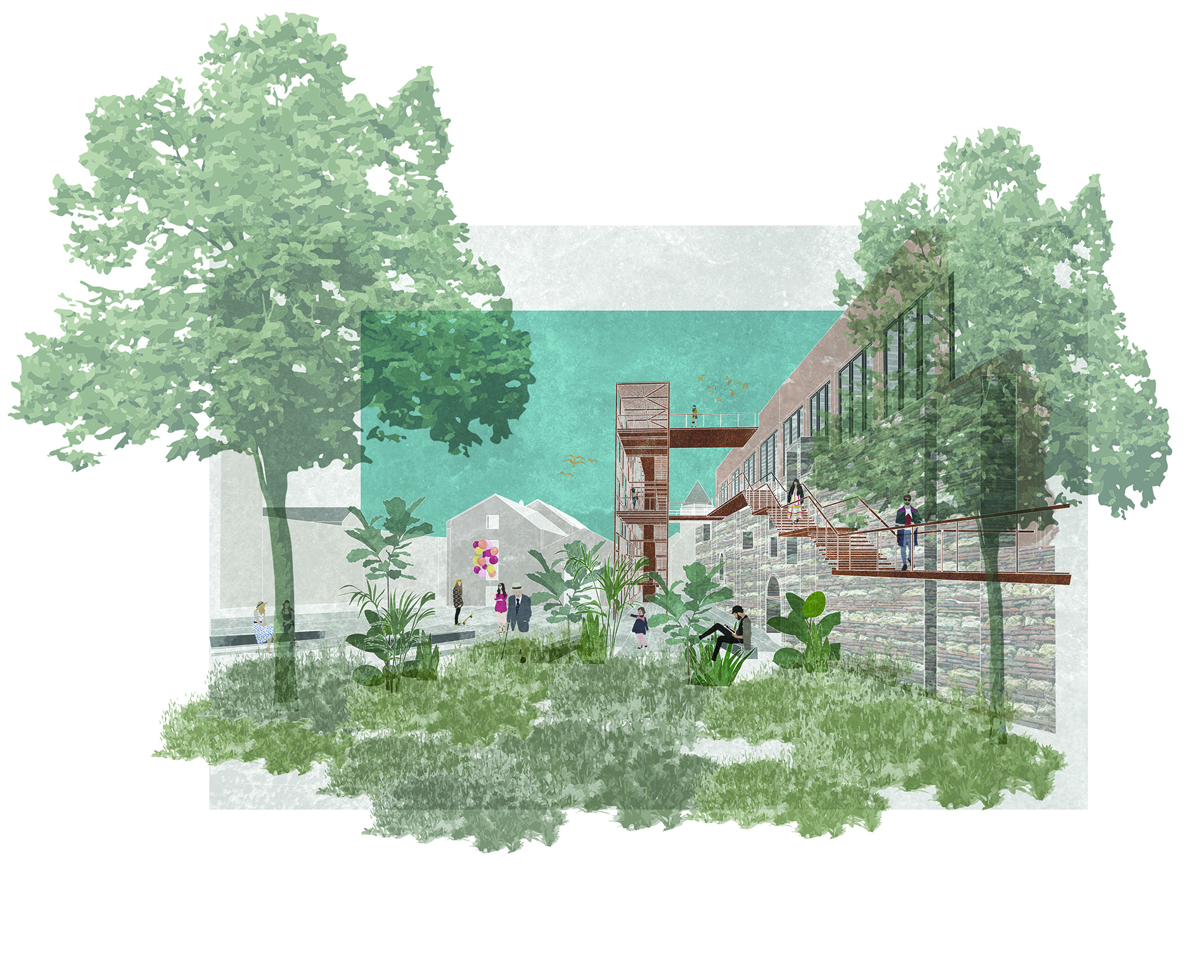 Le projet tient compte de la stratification historique importante sur le site, en mettant en valeur le mur romain et la tour médiévale situés sur la parcelle. Il permet également la continuité des espaces publics et de la promenade urbaine qui parcourt le quartier en proposant de nouvelles porosités du lieu et de nouvelles respirations urbaines et paysagères.