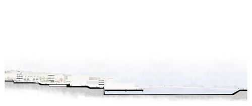 Cette lecture du site amène à la problématique : habiter les infrastructures dans la pente. Ce projet à la volonté de ré-adresser le fleuve à Argenteuil par l'espace public avec une épaisseur habitée en terrasse qui se retourne sur la Seine. Le fleuve constitue un paysage retrouvé et un support vers lequel s'ouvre l'espace urbain.