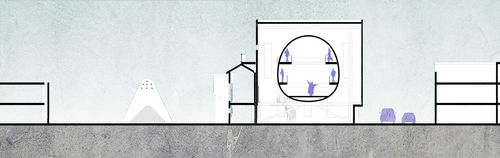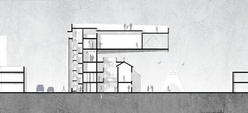 Coupe transversale sur bâtiment contenant la bibliothèque