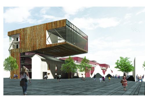 1 / le bâtiment d'entrée: bâtiment contemporain signal en porte-à-faux dans un matériel local et écologique comme le bamboo.