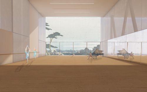 Salle de Danse au 1er, projeter les plateaux vers le grand paysage.