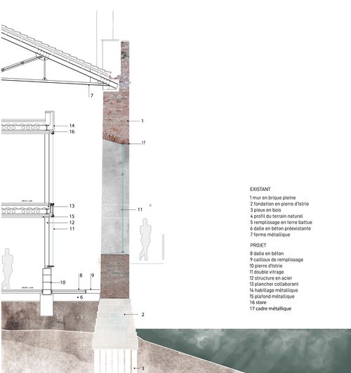 Le but de ce travail a été de prouver que la ruine et la lagune peuvent encore avoir un avenir. Nous pouvons encore explorer ces lieux délaissés et les investir avec un programme productif et ainsi révéler le potentiel unique de transformation des bâtiments surnommés Galeazze Est et Tese delle Nappe 89-90-91.
