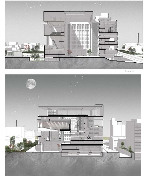 Dans ce projet, il s'agit avant tout d'examiner la relation que ce bâtiment entretient avec son entourage, de la réactualiser, et ainsi redynamiser le fonctionnement de la machine BIGZ. D'un point de vue architectural on cherchera à consolider et pérenniser le statut iconique de cathédrale des arts et de la création, derrière une façade protectrice.
