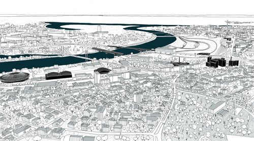Croquis perspectif du quartier industriel de Belgrade ou se trouve le Bigz