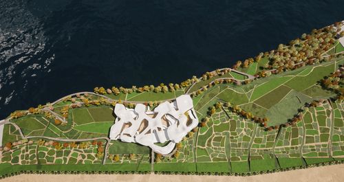 Par la suite, ces principes ont été appliqué à une parcelle à Jargeau, dans le Loiret. Cette dernière est située en zone inondable. Elle est bordée par la Loire et accolée à une digue d'un déversoir. Ainsi, le projet a proposé une perméabilisation des sols via la création d'espaces en permaculture en lien à des dispositifs de gestion de l'eau : des creux de ruissellement, de rétention ainsi qu'un creux de protection. Le bâtiment crée a pour but de ralentir les eaux pluviales grâce à une toiture concave-convexe. Nous y trouvons un pôle de recherche sur l'hydraulique et la permaculture ainsi que des espaces pédagogiques pour les enfants.