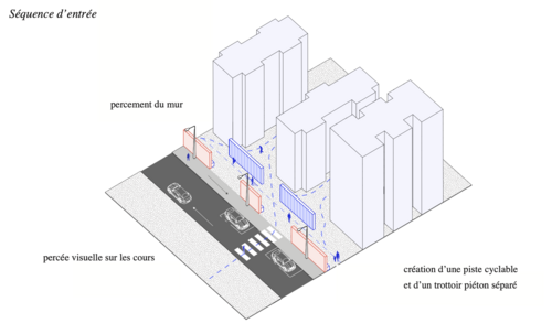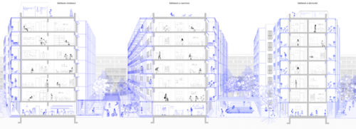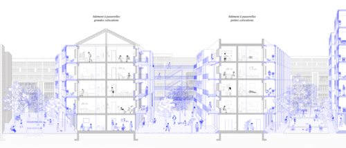Par la réhabilitation de cette communauté, nous souhaitons mettre l'architecture au service d'un mode de vie, dans lequel l'esprit de communauté, perdu aujourd'hui, est rétabli par un l'habitat partagé et la convivialité qu'il engendre de par les rencontres entre les résidents et les moments de sociabilité au sein du quartier. Ainsi, nous nous sommes confrontées à des questionnements sociaux auxquels nous répondons par une nouvelle enveloppe architecturale. Les loyers ne cessant d'augmenter en ville, il s'agit de proposer une alternative au logement traditionnel favorable à un mode de vie en communauté. L'habitat partagé permettrait de maintenir la population existante tout en y apportant de nouveaux résidents de divers horizons et la mutualisation des espaces communs permet d'offrir de plus grandes superficies aux habitants. Cela participe alors à la formation de la communauté de demain.
