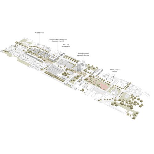 Ma réflexion pour ce diplôme est de penser les deux défis auxquels la ville est confrontée - à savoir le renouvellement du quartier prioritaire de la ville et l'accueil d'une nouvelle population aisée - de façon coordonnée. L'étalement urbain, la mixité sociale ou encore le devenir des grands ensembles, dont la démolition est parfois présentée comme inéluctable, sont questionnés dans ce diplôme. Est particulièrement étudié le renouvellement de l'attractivité résidentielle du plateau de Surville par la création d'un espace public planté de qualité, dans la continuité du projet dessiné par les architectes du grand ensemble.