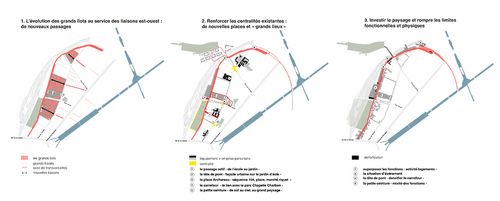 Le projet interroge la capacité d'un tracé qui souffre de plusieurs dysfonctionnements, à devenir un élément majeur d'un paysage, qui agit comme une colonne vertébrale sur laquelle viennent se greffer différents systèmes de la ville : les équipements, le logement, les commerces, l'activité, le transport et les espaces publics. Il s'agit, par ce projet, de donner toutes ses valeurs et ses qualités à la rue comme structure ordonnatrice de la ville. il s'agit également de répondre à différents enjeux que posent le territoire.