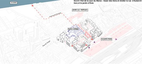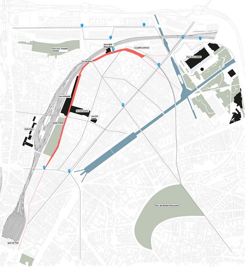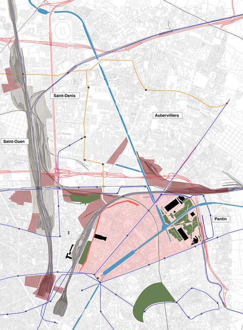 Ce projet de fin d'études inscrit dans le domaine d'étude territoires de l'architecture, constitue un fragment venant enrichir mon parcours, par de nouvelles réflexions et expérimentations. Il est donc le résultat des enseignements, des sensibilités et des expériences acquises au sein du cursus à l'école d'architecture, mais également hors de ses murs. Situé entre le canal et la faisceau ferroviaire, mon périmètre de réflexion prend en compte les grands infrastructures qui irriguent le territoire du nord-est parisien ainsi que les équipements qui l'animent : le parc de la Villette, le jardin d'Éole, le futur parc Chapelle Charbon, le cent-quatre. Ce périmètre va aider à montrer la réalité et le fonctionnement du territoire, ses dynamiques et ses manquements.