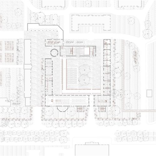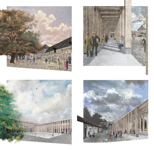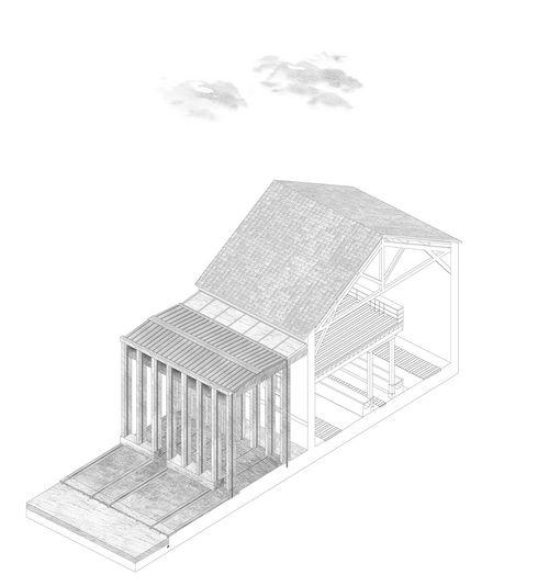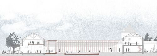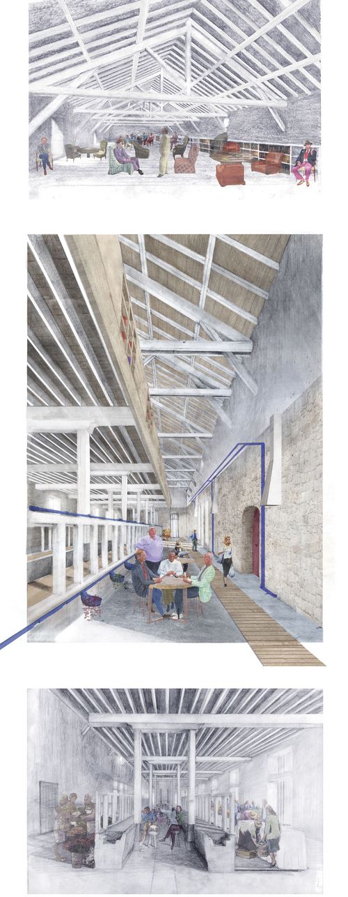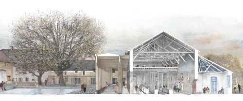 Pour ce faire, l'intervention architecturale est appliquée à l'ancienne ferme de grande importance, dont la cour centrale guide le projet. La conception d'une galerie est développée pour garantir déambulations, rencontres, successions et découvertes de lieux. Par la répétition de son détail, selon un rythme recherché et défini, il est question de mettre en relation les éléments du contexte, associant des problématiques diverses : architecturales et architectoniques, structurelles, environnementales ou sociales.