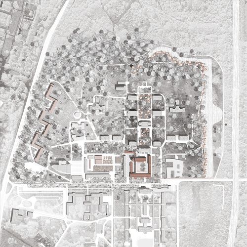 Le projet s'inscrit au coeur de l'hôpital psychiatrique de Ville-Evrard. Par sa situation géographique d'exception, riche de sa Nature au bord de l'eau, son passé historique et ses volontés actuelles d'ouverture de la psychiatrie dans la société, le dessein est de mettre en avant l'être humain et le bien-être par : l'incarnation (l'Etre, son corps et son esprit) et l'intégration (les Autres).