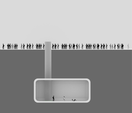 Le paradis est un ailleurs. En partant sur l'idée que l'ailleurs n'est pas l'ici, il pourrait, peut-être, prendre une forme d'échappement de l'ici. Ce projet constitue un système d'échappement sous forme d'un réseau souterrain à l'échelle urbaine. Il est constitué par des échappatoires de dimensions différentes ainsi que des transitions : des couloirs, tapis roulants, escaliers, escalateurs ...