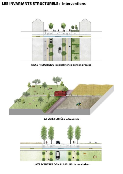 L'emprise du projet repose sur le territoire spatial structuré par 4 invariants : axe historique, eau, voie ferrée, échangeur.