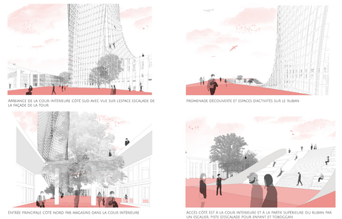 Pour notre projet architectural, l'accent est mis sur la conception architecturale et écologique de la tour. Tour sportive qui redynamise non seulement la rive mais aussi la Skyline de la ville. Par la conception de notre nouvelle tour, la première d'une telle hauteur (200m) sur la rive droite, elle symbolise le développement de Praga à son tour en rivalisant avec les hauteurs de la rive gauche.
