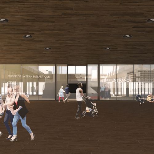 Le projet a pour but de terminer le quartier de l'Eure tout en offrant un lieu où les habitants de la ville et les visiteurs puissent se retrouver. Le bâtiment est soulevé permettant ainsi de laisser l'espace sous celui-ci libre et ainsi offrir une vue lointaine sans qu'il vienne la bloquer. Le point majeur du travail s'est articulé autour de la relation du projet avec les formes, dont la plus grande est enjambée par le bâtiment. Deux programmes s'implantent dans le bâtiment, une partie où se situe le musée de la transatlantique et l'autre où s'implante une salle de conférence avec un café/restaurant.