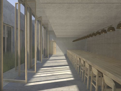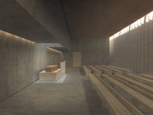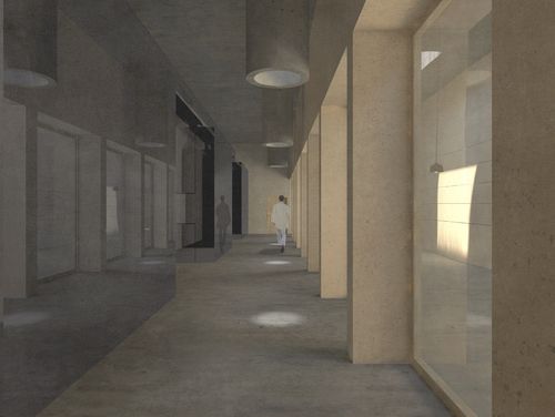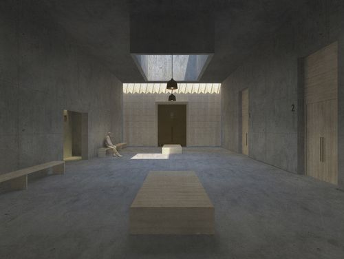 04/06 Hall du crématorium - lumières zénithales et portes monumentales