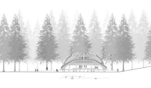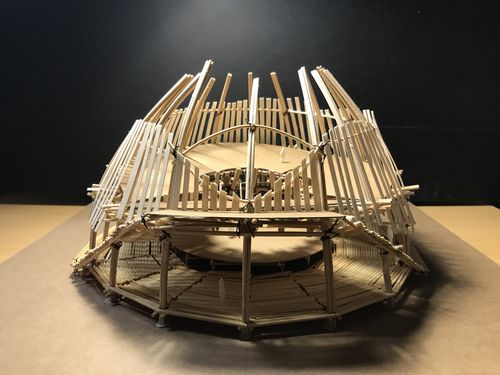 " Le pavillon de la Lune " est un projet qui repose essentiellement sur des symboles importants de la culture chinoise. Le symbole de la Lune, le culte de la nature ainsi que l'emploi du matériau de bambou ont été choisis pour créer un projet architectural identitaire du pays. Le projet insolite d'une promenade allant du pavillon individuel de travail dans le "Jardin des lettrés" à un spacieux pavillon d'observation de la Lune permet de penser la vie nocturne et d'apporter une sensibilité poétique dans un campus scientifique. La particularité du terrain choisi est sa topographie, le plus haut sommet de la ville, la montagne Yujia offre des vues magnifiques sur le paysage urbain de Wuhan, le lac de l'Est au nord, ainsi que la couverture verte du campus au sud.