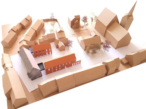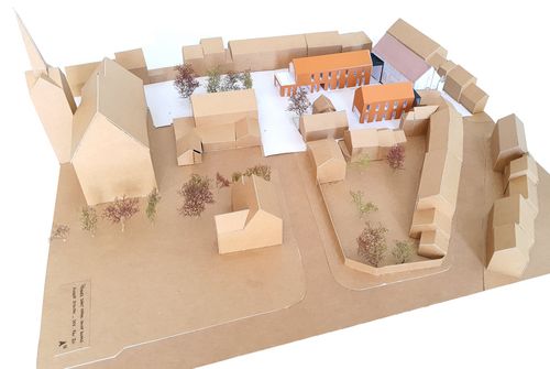 La réhabilitation de ce lieu se fait par l'accueil de nouvelles fonctions : relocalisation de la Mairie actuelle dans le Prieuré et dans une des ailes, créations de commerces de proximité et d'un espace de travail partagé.