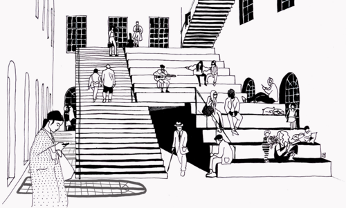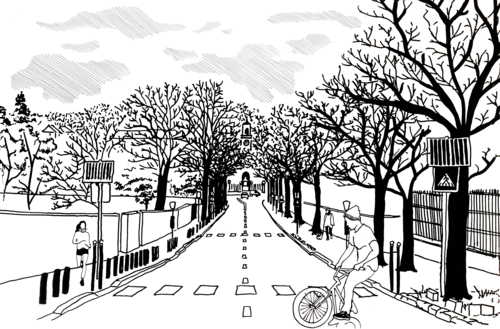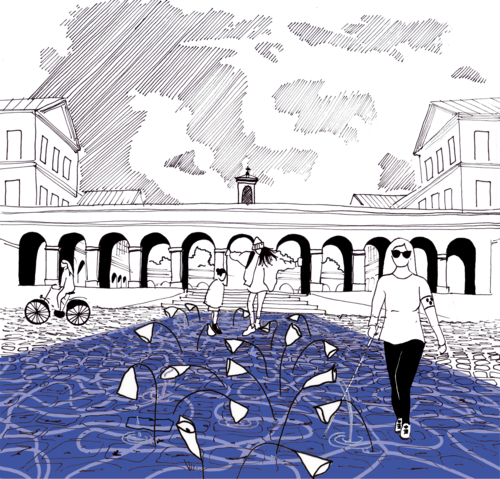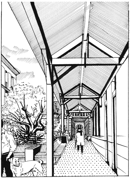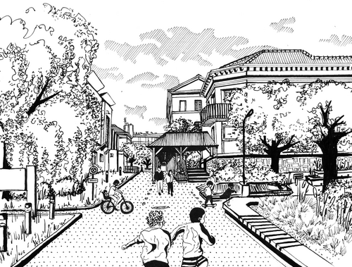 Ce story board narre une promenade ponctuée d'interventions aussi bien high-tech que low-tech, où l'eau y est omniprésente. Il reflète les ambiances et la mise-en-scène de ce lieu en pleine mutation, s'inscrivant dans un parcours ludique utopique.
