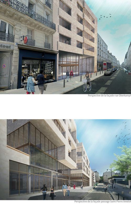 Perspective de la façade rue Oberkampf / Perspective de la façade passage Saint Pierre Amelot