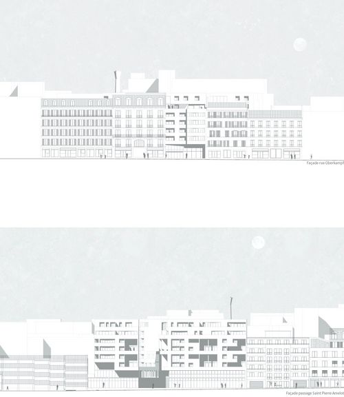 Mon PFE avait pour but la naissance d'une traversée publique en plein coeur de Paris entre deux rues n'ayant jamais été liées par le passé directement, à savoir la rue Oberkampf et le passage Saint Pierre Amelot. Celle-ci serait bordée en rez-de-chaussée d'ateliers d'artiste, d'une salle d'exposition et d'un espace de coworking, des logements se situant en partie supérieure du projet, ceci afin de faire naître un nouvel ensemble de ville / vie.