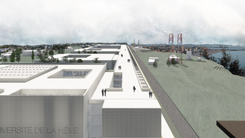 Le projet du Campus de la Hève s'inscrit au sein d'un travail commun à l'échelle territoriale sur le dessin d'une ligne articulée qui vise à requalifier les hauteurs des falaises de Sainte-Adresse et ainsi créer une nouvelle centralité périphérique en articulant plusieurs projets.