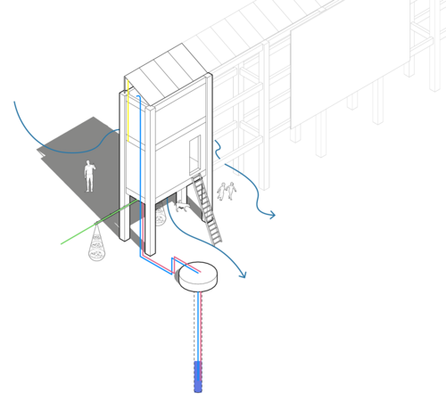 - réalisation d'un château d'eau horizontal comme pôle énergétique infrastructurel permettant de faire lien entre cultures et bâtis