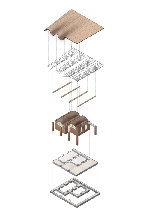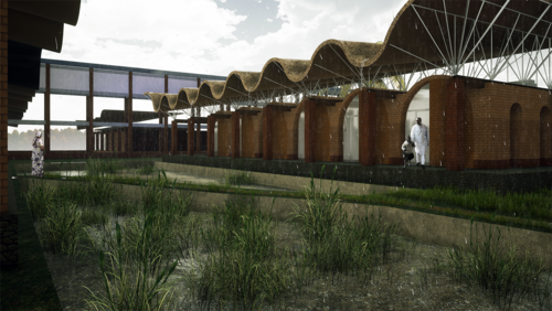 - recouvrement des constructions en terre par un "parapluie" pour atténuer l'inertie des murs et le rendement de chaleur la nuit (centre de santé)