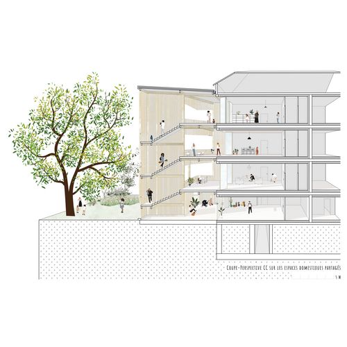 Coupe perspective CC sur les espaces domestiques partagés